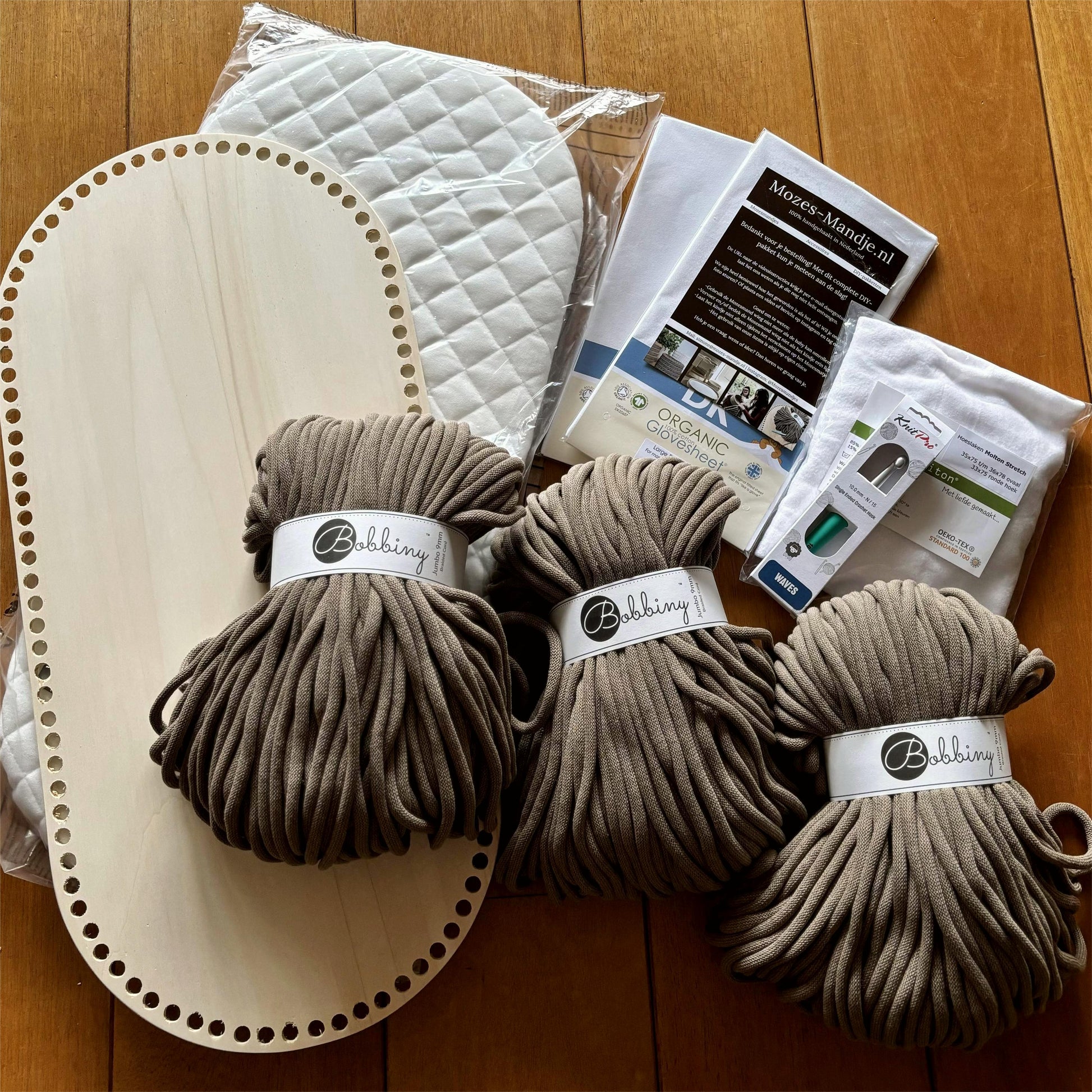 Mozesmandje DIY Pakket | Wiegje Haken | Kleur naar Keuze | Incl Haaknaald, Matras en Molton